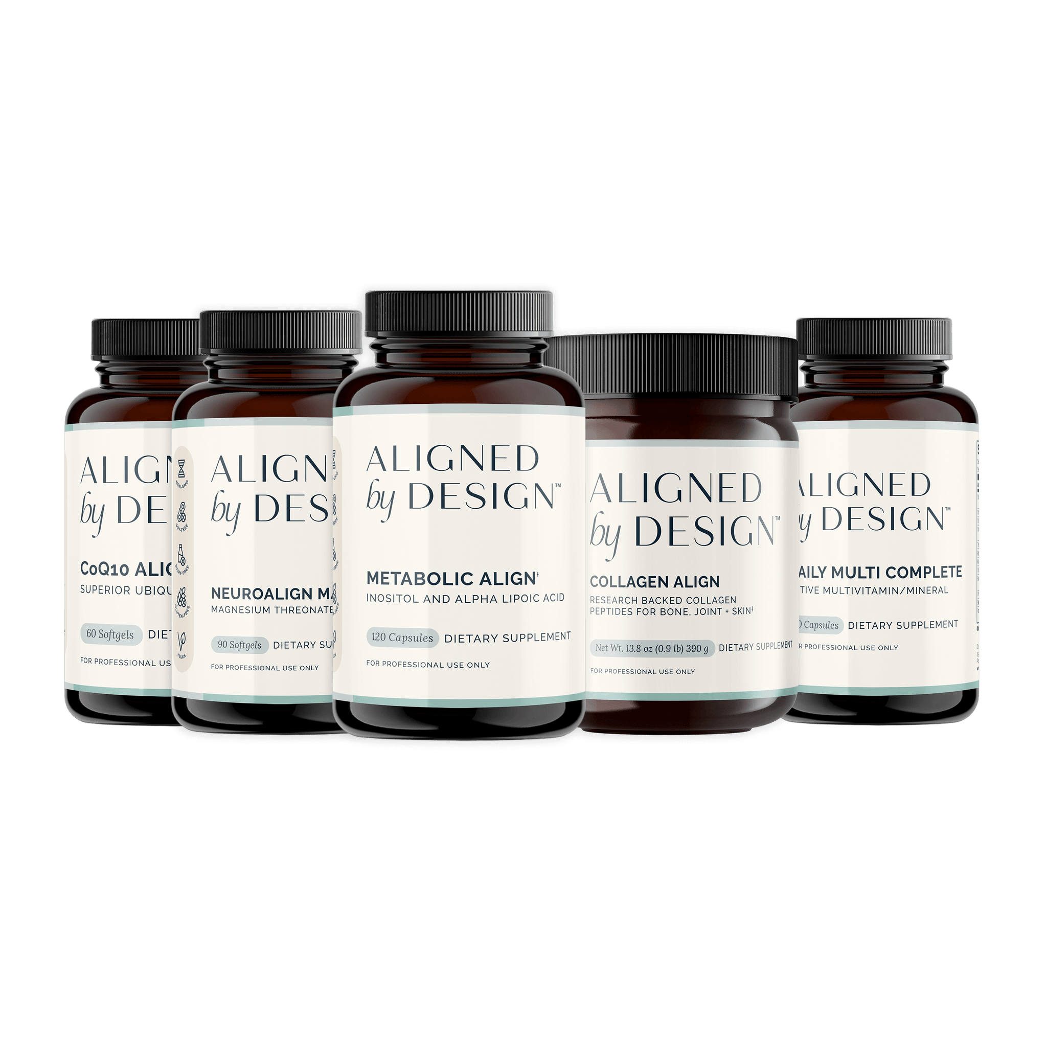 Metabolic Align, Collagen Align, Daily Multi Complete, CoQ10 Align, and NeuroAlign Mag