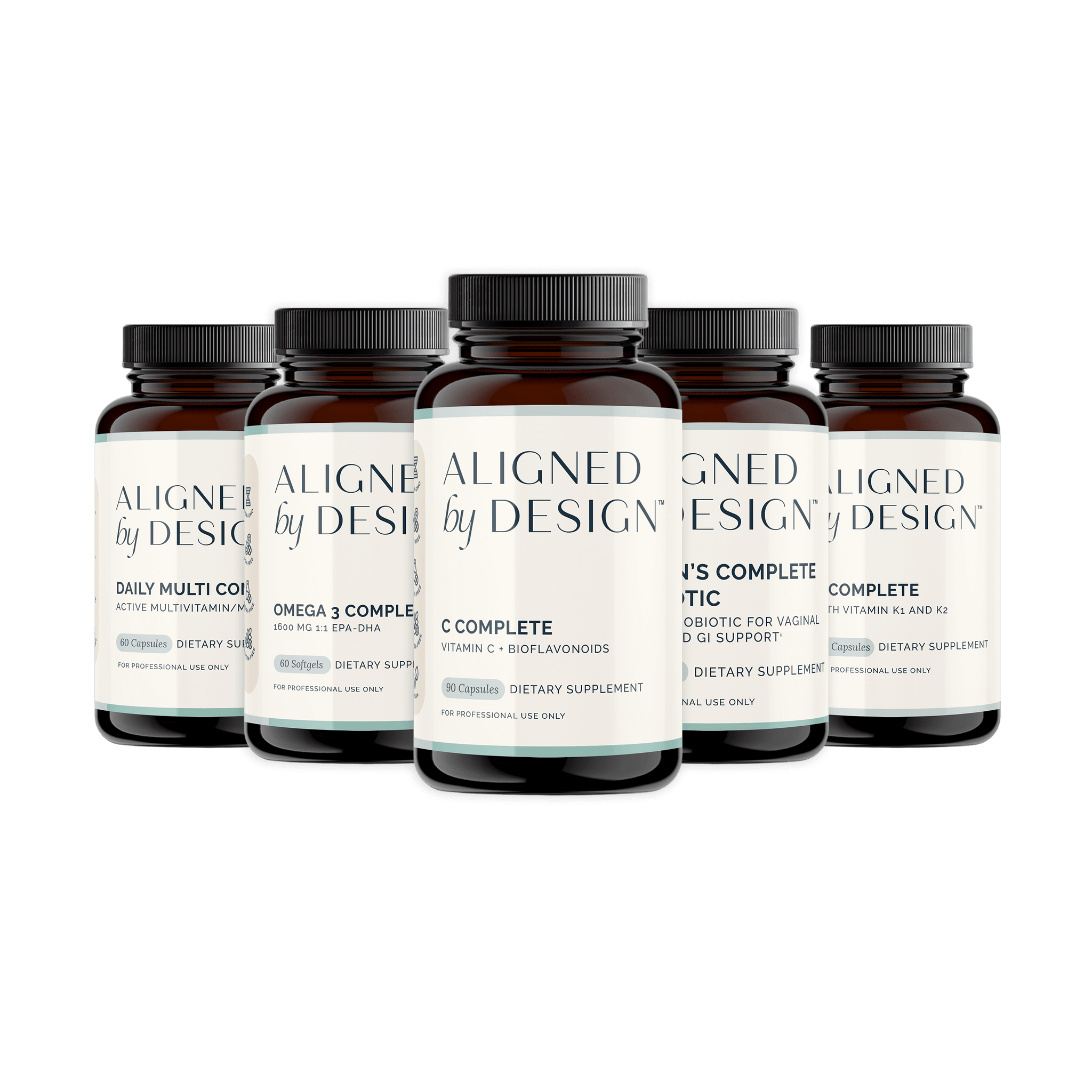 D Complete, C Complete, Women’s Probiotic Complete, Daily Multi Complete, and Omega 3 Complete